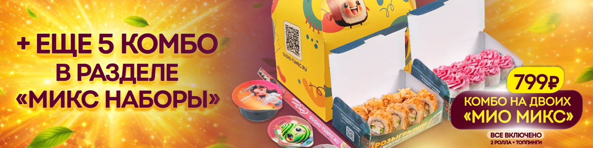 Калифорния темпура, Тори темпура, Гриль миди, Гриль кальмар, Калифорния классика, Сёгун, Лава с крабом, Чикен барбекю, Кани запечённые, Масакура, Филадельфия фреш, Гриль краб суши, Гриль кальмар суши, Чука суши, Тобико суши, Гриль креветка суши. 3000 гр.
